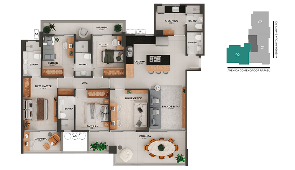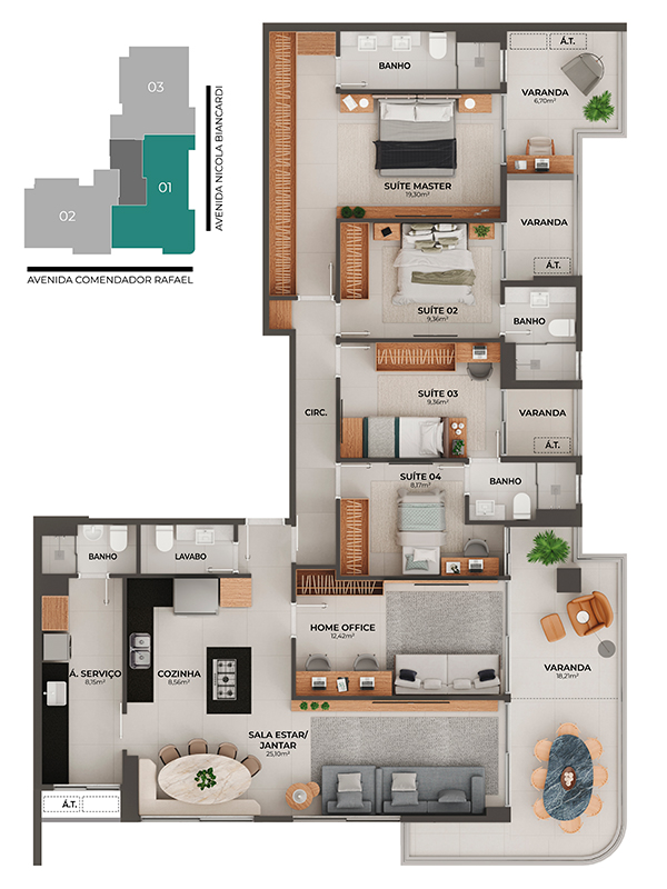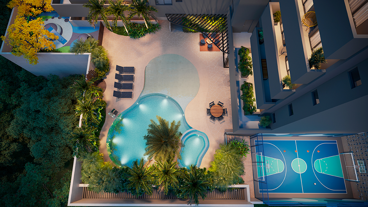 O empreendimento conta com 10 lojas comerciais, 37 unidades de apartamentos de 4 quartos, lazer acessível com mais de 600m² contendo: piscina, hidromassagem, solarium, quadra poliesportiva, beer garden, lounge, sauna, playground, pet place e bicicletário.