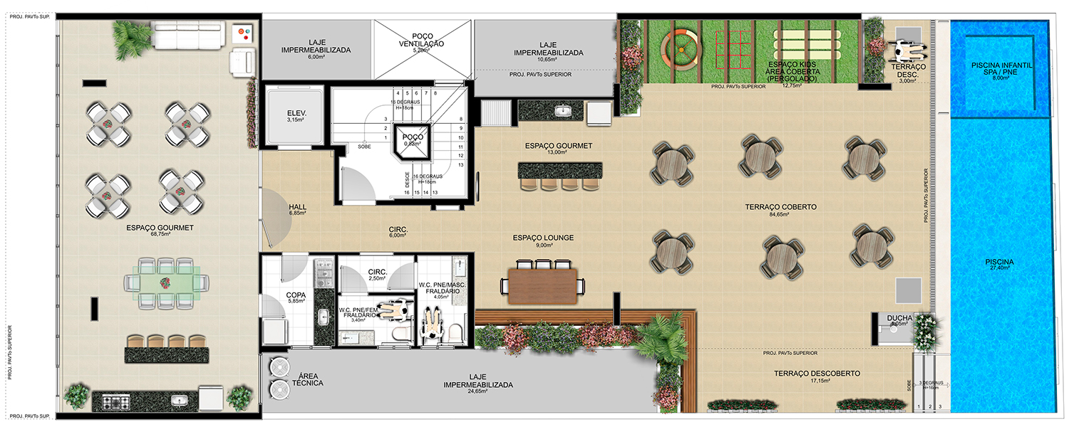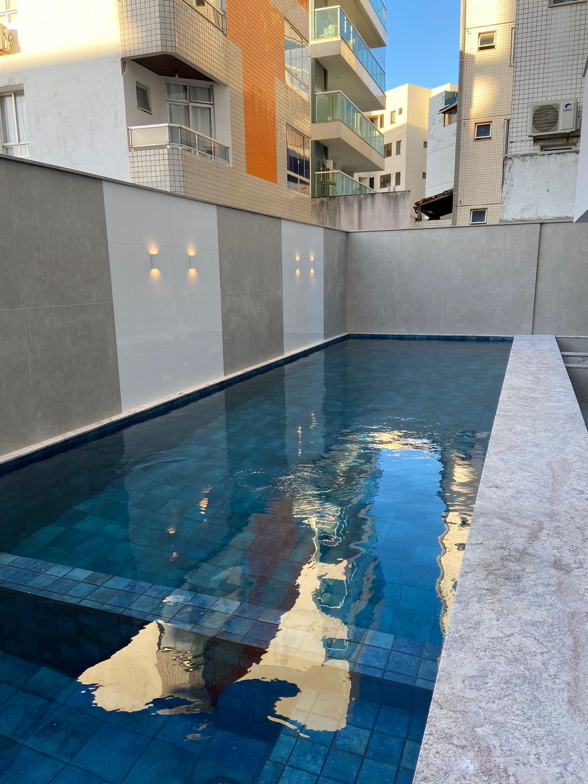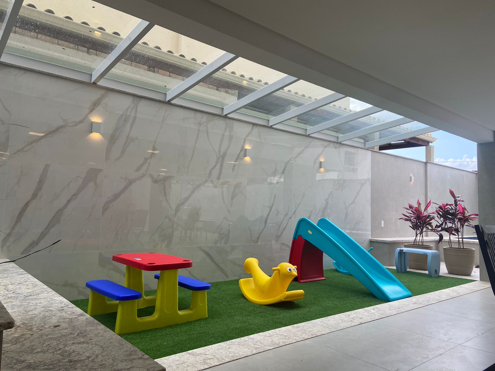 Piscina adulto, Piscina infantil, Churrasqueira, Espaço gourmet, Vista para a Praia de Peracanga, Espaço kids e playground